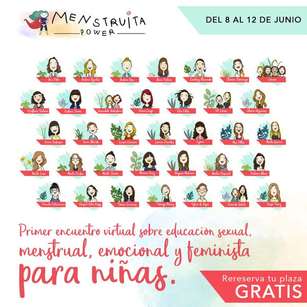 Si todo lo que has leído hasta aquí te interesa y no quieres que la nueva generación que llega, viva su sexualidad, su entrada a la vida cíclica, sus primeras menstruaciones con tanto desconocimiento como se vivió en el pasado. ¡me alegro infinito de que estemos de acuerdo! Porque esa fue nuestra intención cuando junto a Cristina Torrón decidimos impulsar el Primer Encuentro Virtual Menstruita Power, un encuentro sobre educación sexual, menstrual, emocional y feminista para niñas del 8 al 12 de Junio de 2020, en el que ofrecemos charlas, herramientas e información de súper calidad para que juntas podamos acompañar a nuestras hijas a conocer su cuerpo, disfrutar de su sexualidad y transitar todas las emociones que van a ir descubriendo a lo largo de su vida, desde el amor y la diversidad. Si te interesa puedes adquirirlo en este link.
